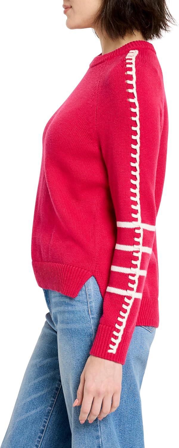 An easy pullover that adds a little extra to the everyday look thanks to the whipstitch detailing up the sleeves, and placed white stripes on the cuff. Made from a plied-up version of our super soft Zephyr yarn for a comfy, effortless feel. We gave it an easy fit, a round neck, and raglan sleeve to create a more feminine shape. The hi/low hem sits at the hip and offers extra coverage in the back.