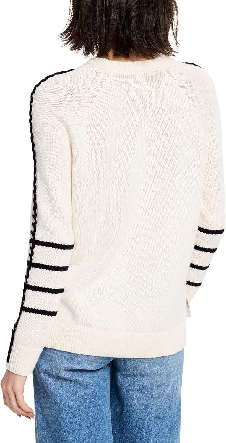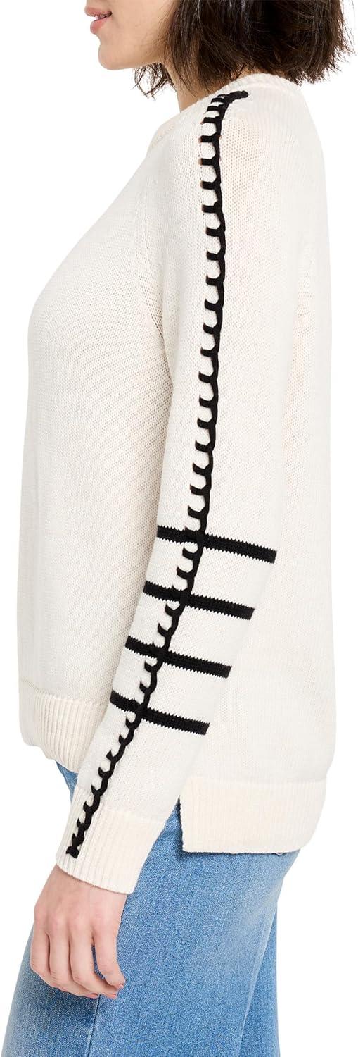 An easy pullover that adds a little extra to the everyday look thanks to the whipstitch detailing up the sleeves, and placed white stripes on the cuff. Made from a plied-up version of our super soft Zephyr yarn for a comfy, effortless feel. We gave it an easy fit, a round neck, and raglan sleeve to create a more feminine shape. The hi/low hem sits at the hip and offers extra coverage in the back.