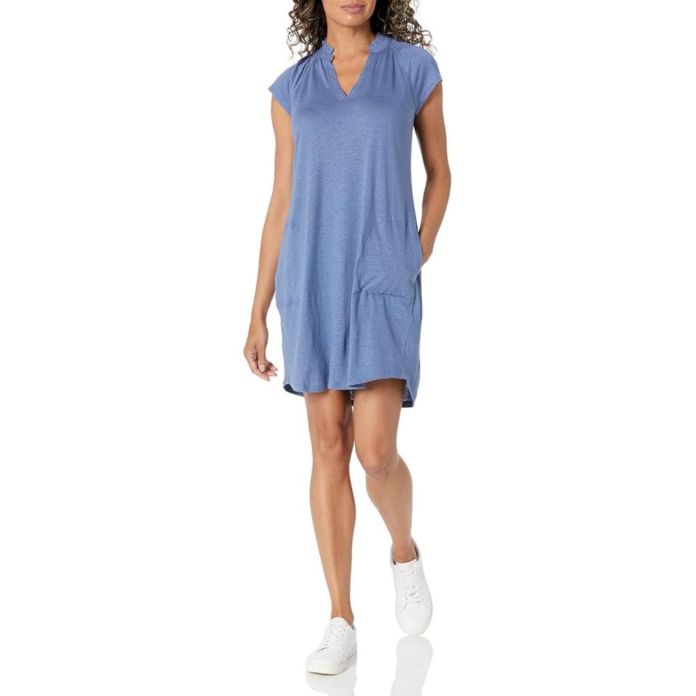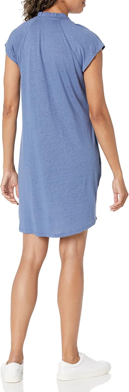 Meet your favorite new t-shirt dress. Simple yet totally perfect – this knit dress is made with our lightweight linen modal fabric for effortless ease. We gave this a stand collar and straight fit. The neckline has a subtle ruffle detail you’ll love.