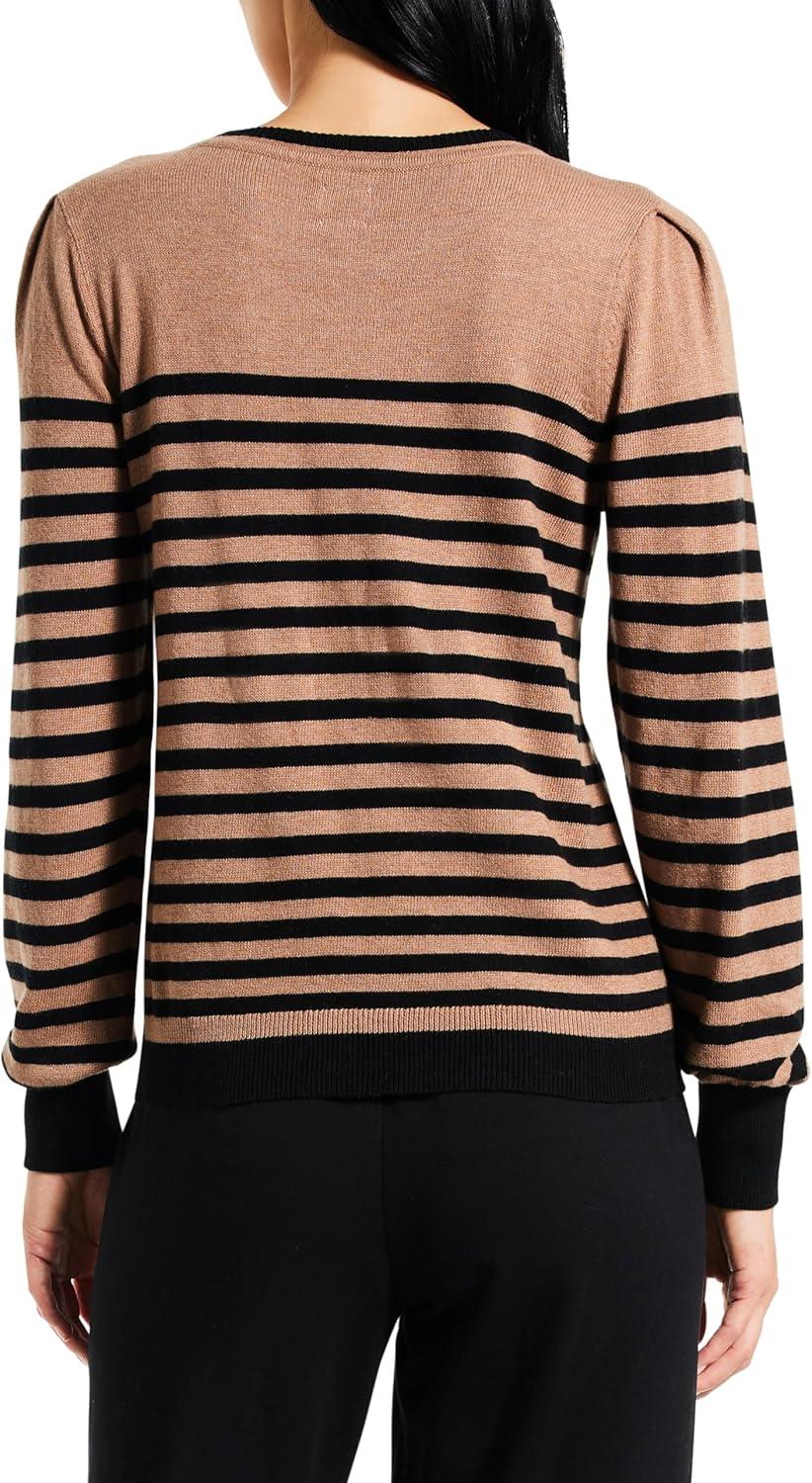 NIC+ZOE Women’s Striped Femme Sleeve Sweater(Black Multi)