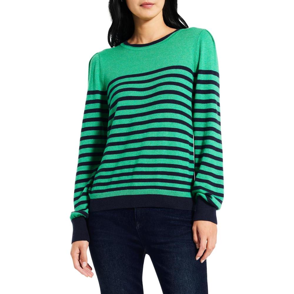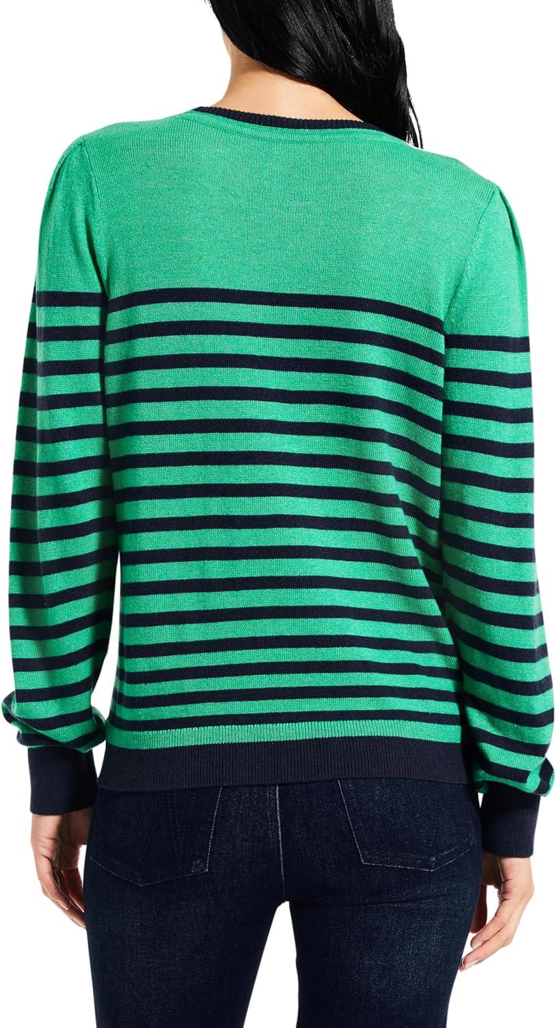 NIC+ZOE Women’s Striped Femme Sleeve Sweater(Green Multi)