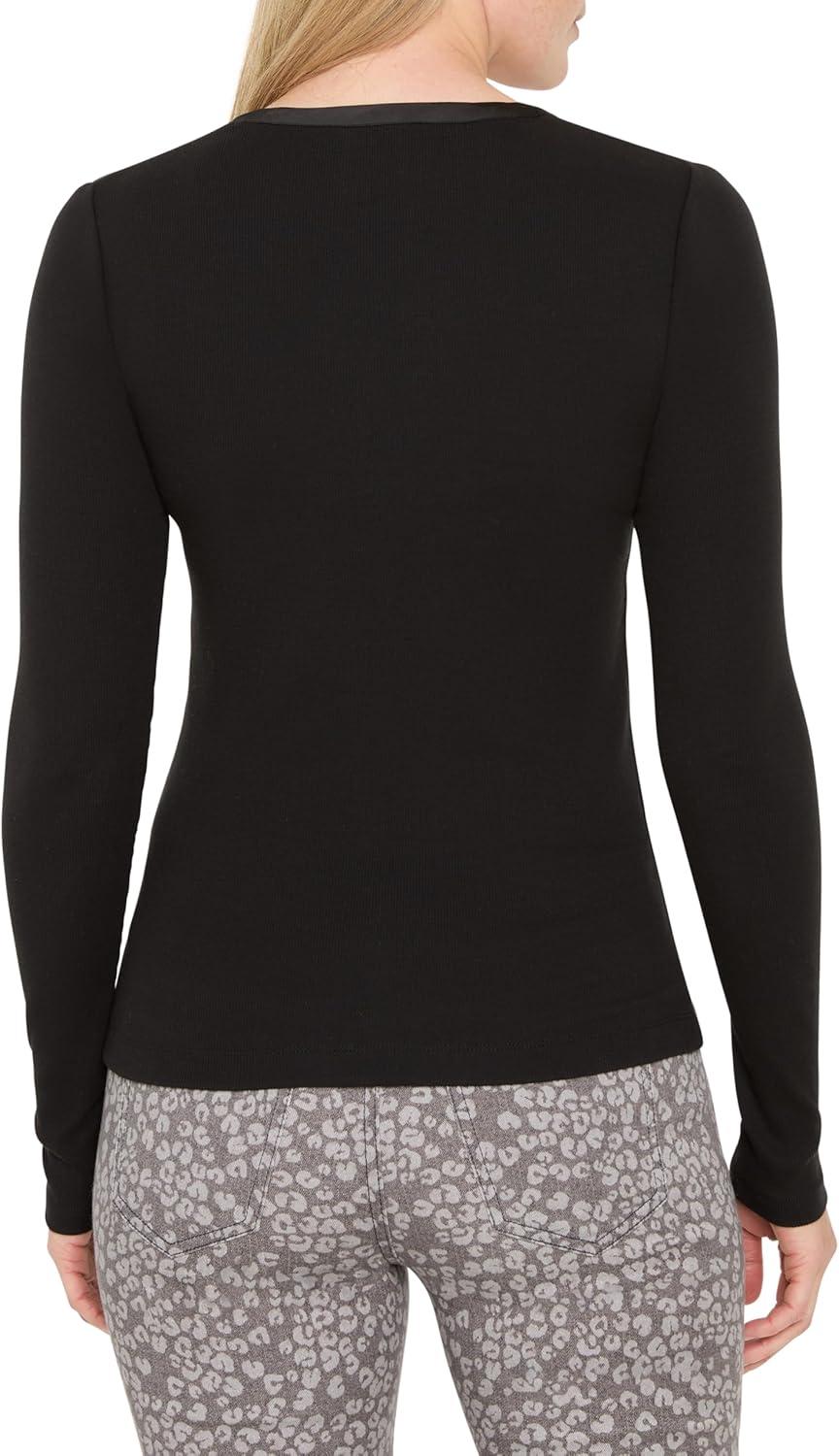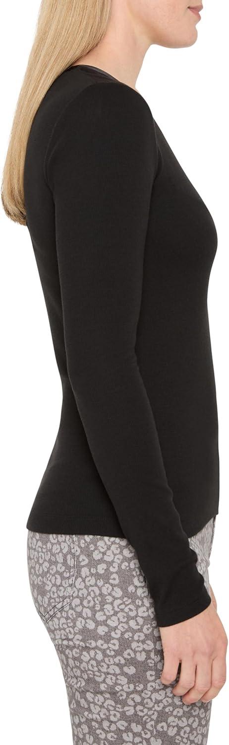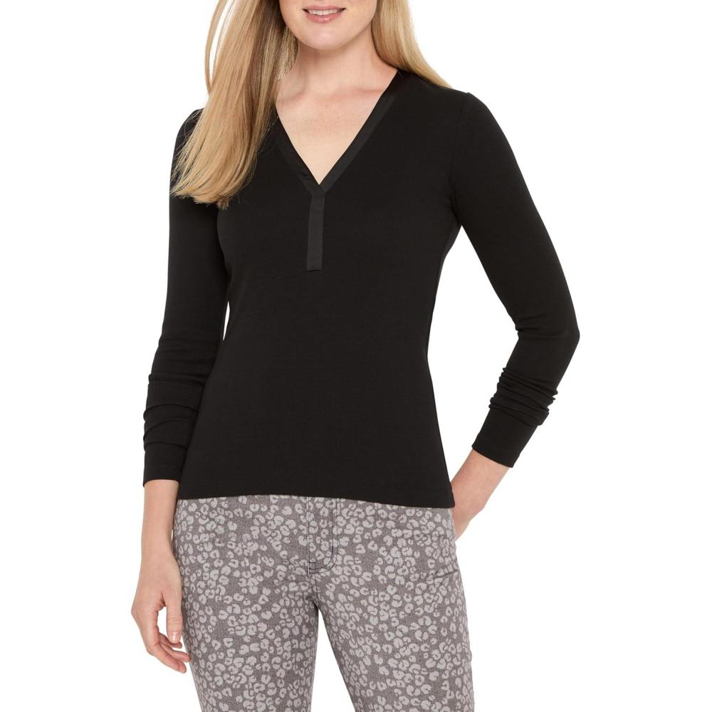 NIC+Zoe Womens Trimmed Perfect Knit Rib V-Neck Top(Black Onyx)
