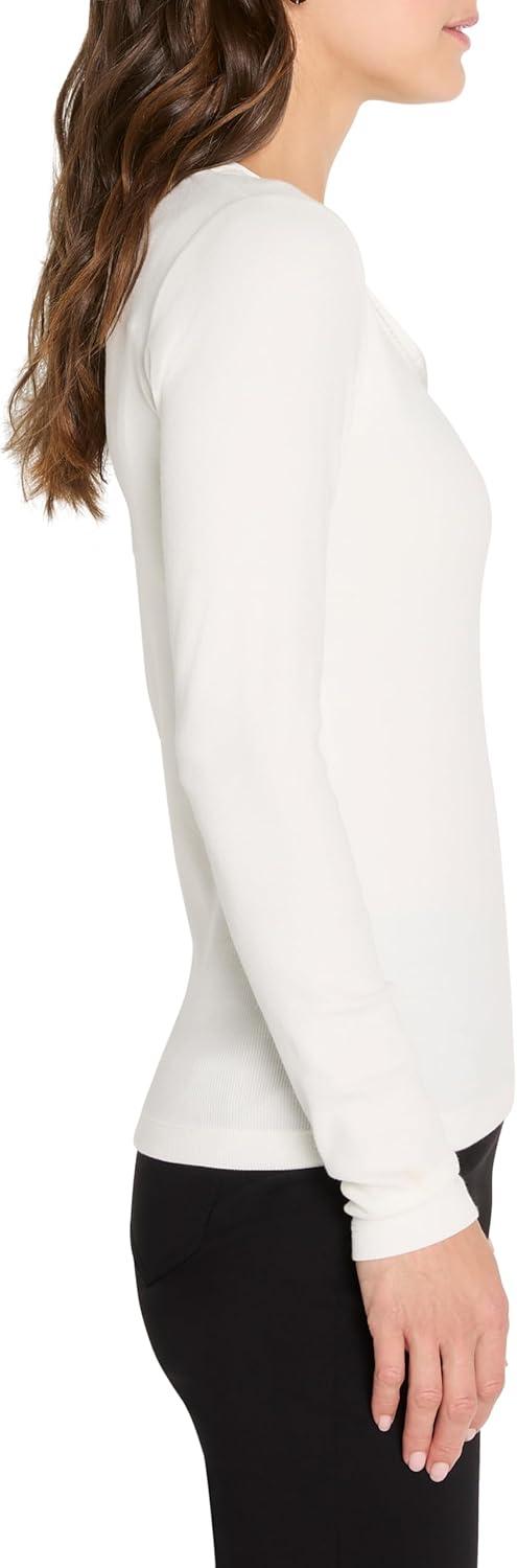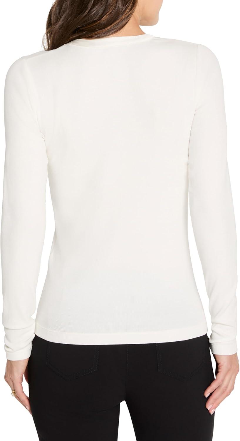 NIC+Zoe Womens Trimmed Perfect Knit Rib V-Neck Top(Classic Cream)