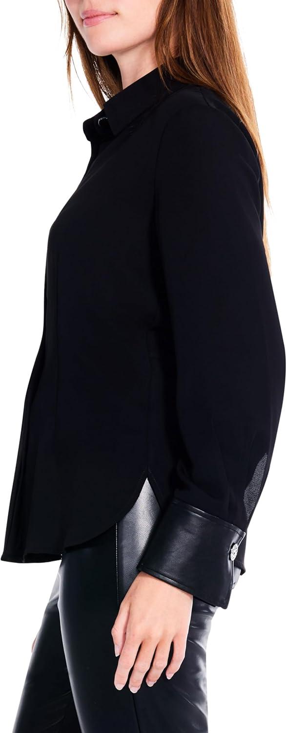 NIC+ZOE Womens Trimmed Up Shirt(Black Onyx)