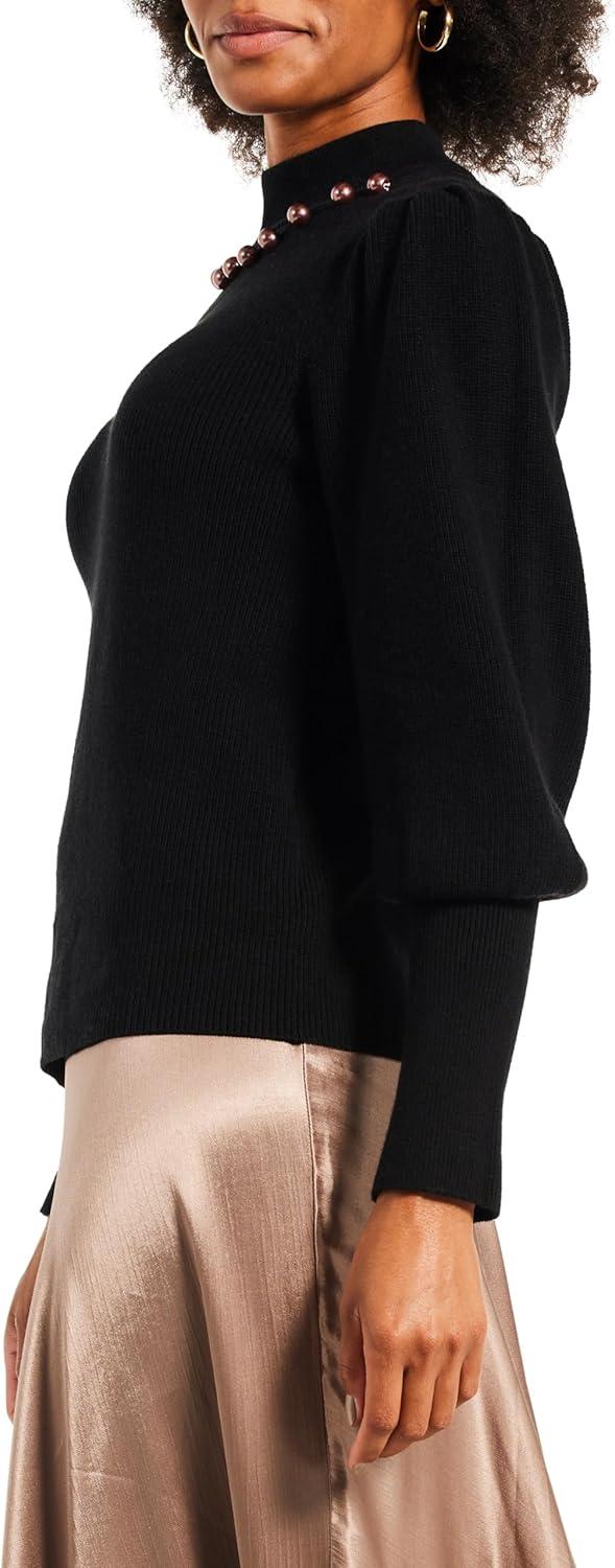 The sun may be setting, but your fun has only just begun. Designed with entertaining in mind, this solid block of color relies on its details to make the difference: details like the extra-long cuff, the mock neck rib collar with placed beads that draw the eye, and the pleated gathering at the top of the sleeve. A midweight fit with a hem that sits at the hip.